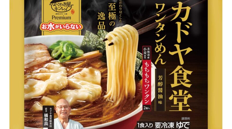 続きを読むキンレイの新プレミアムライン商品、「お水がいらないプレミアム カドヤ食堂ワンタンめん」(494g) 同じく「お・・・