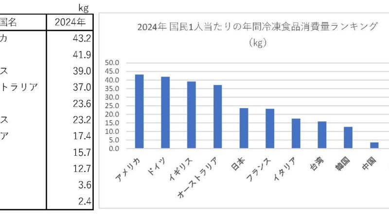 続きを読む国民1人当たりの年間冷凍食品消費量 (資料:「ユーロモニターインターナショナル」、日本の数値のみ日本冷凍食品協・・・